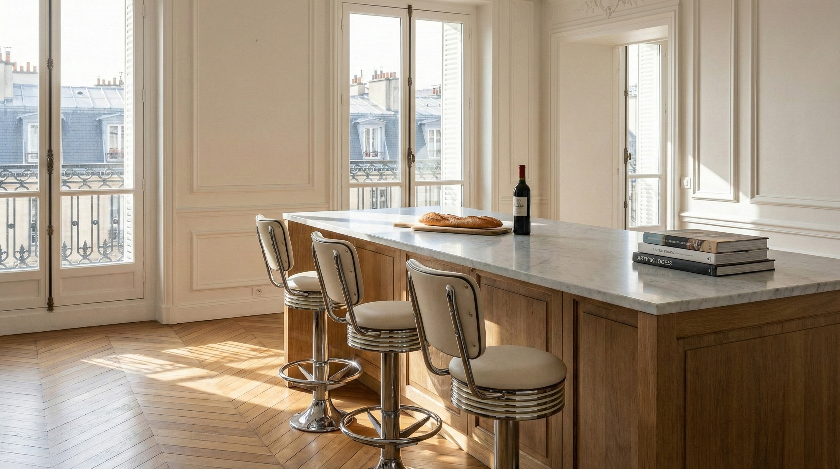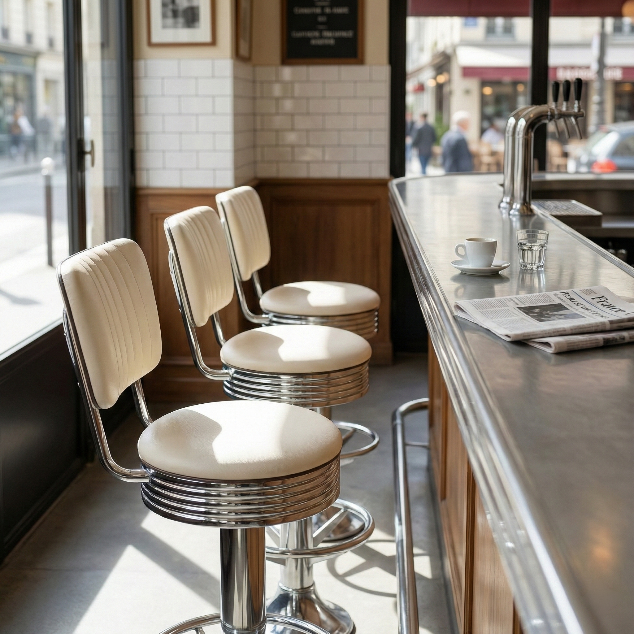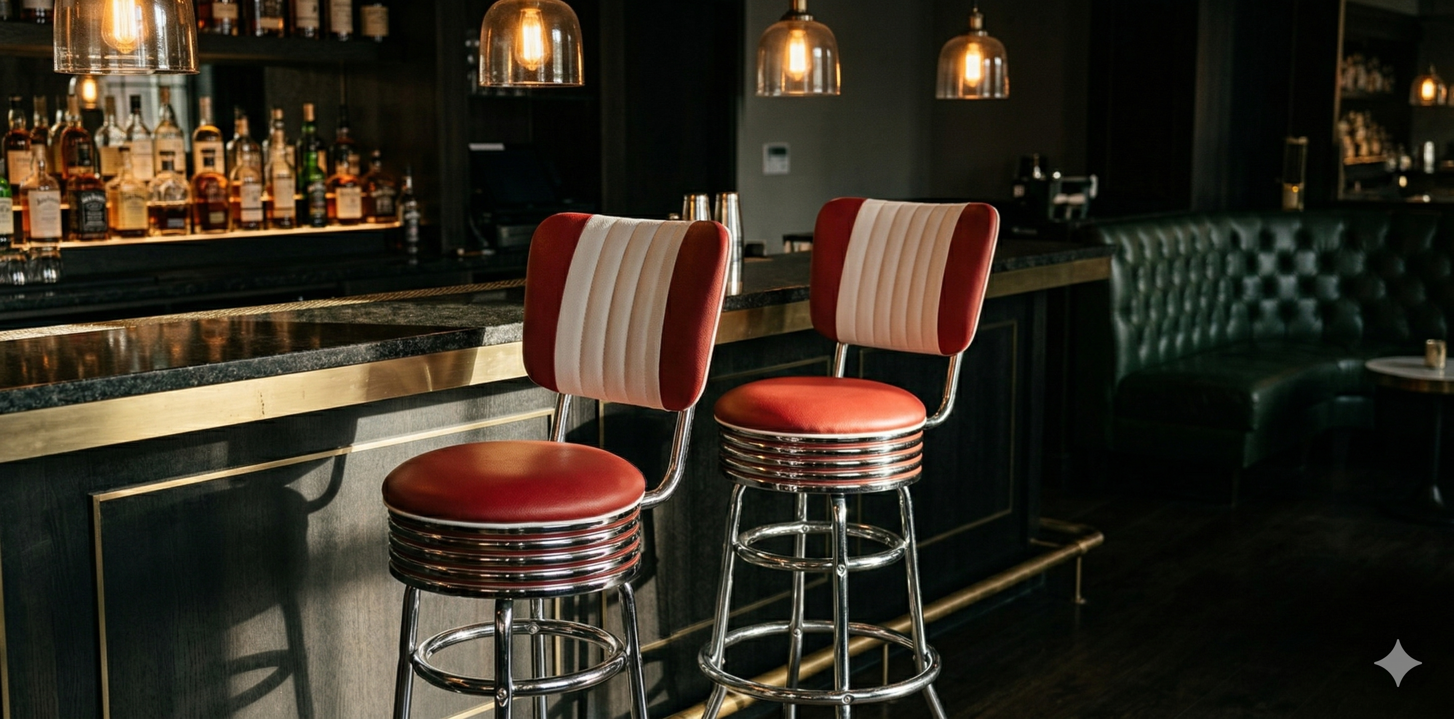Chrome, Formica HPL, simili-cuir. Les mêmes matériaux qu'à l'époque, encore plus durables.